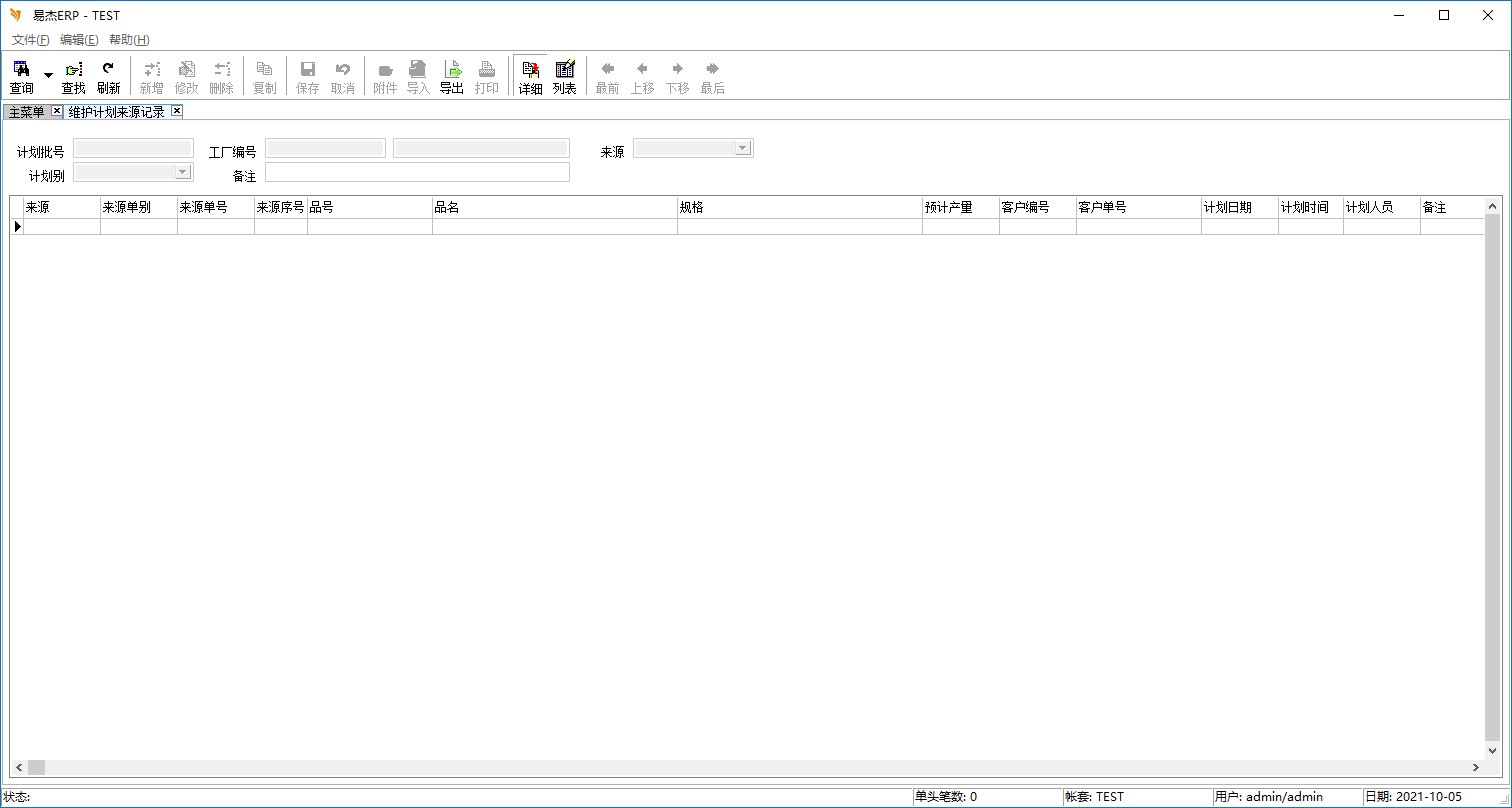 程序名称:维护计划来源记录