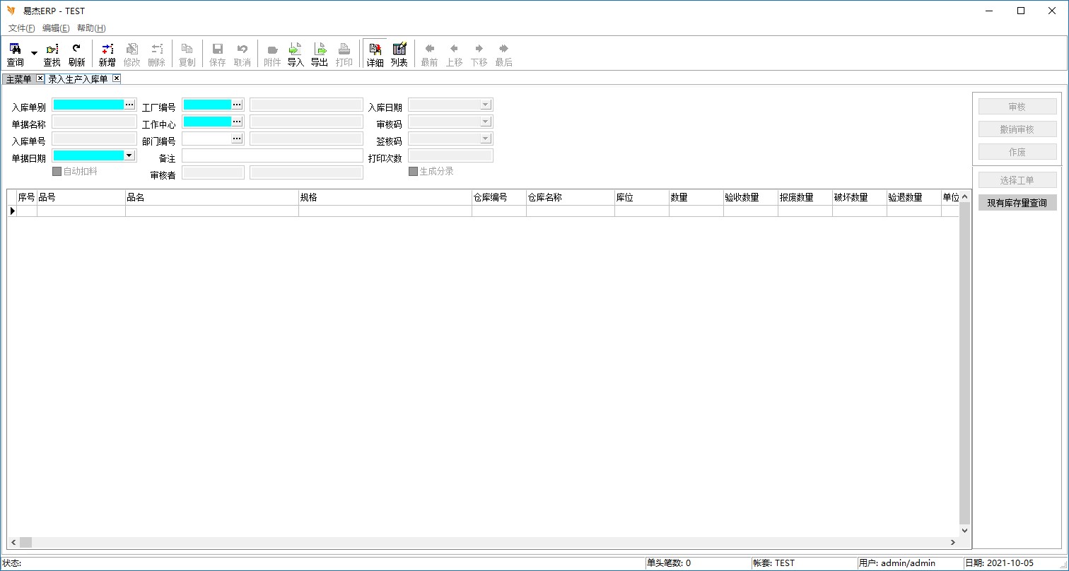 程序名称:录入生产入库单