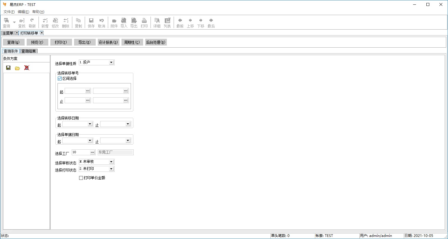 可以选择需要打印的转移单号区间,空白表全部信息。
