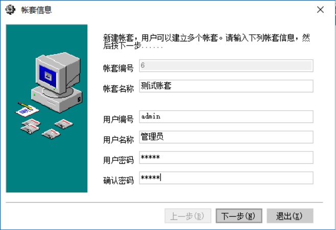 在主菜单中点击 帐套->新建帐套,出现如下画面: