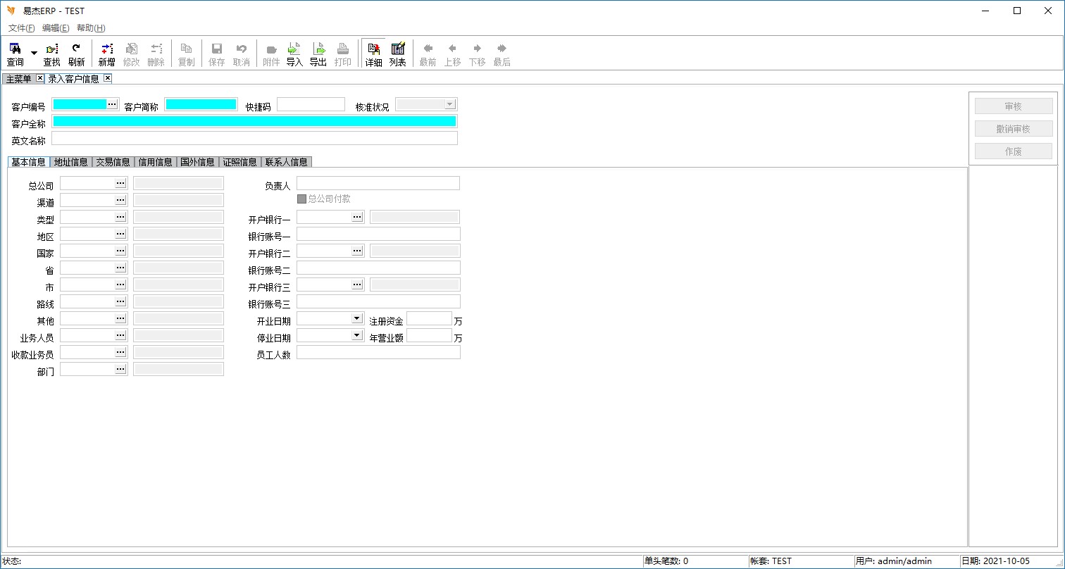 树状主菜单中选择 销售管理子系统->客户管理->录入客户信息,出现如下画面: