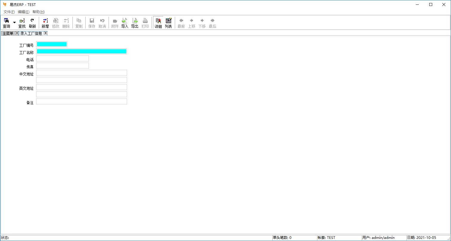 树状主菜单中选择 系统管理子系统->基础设置->录入工厂信息,出现如下画面: