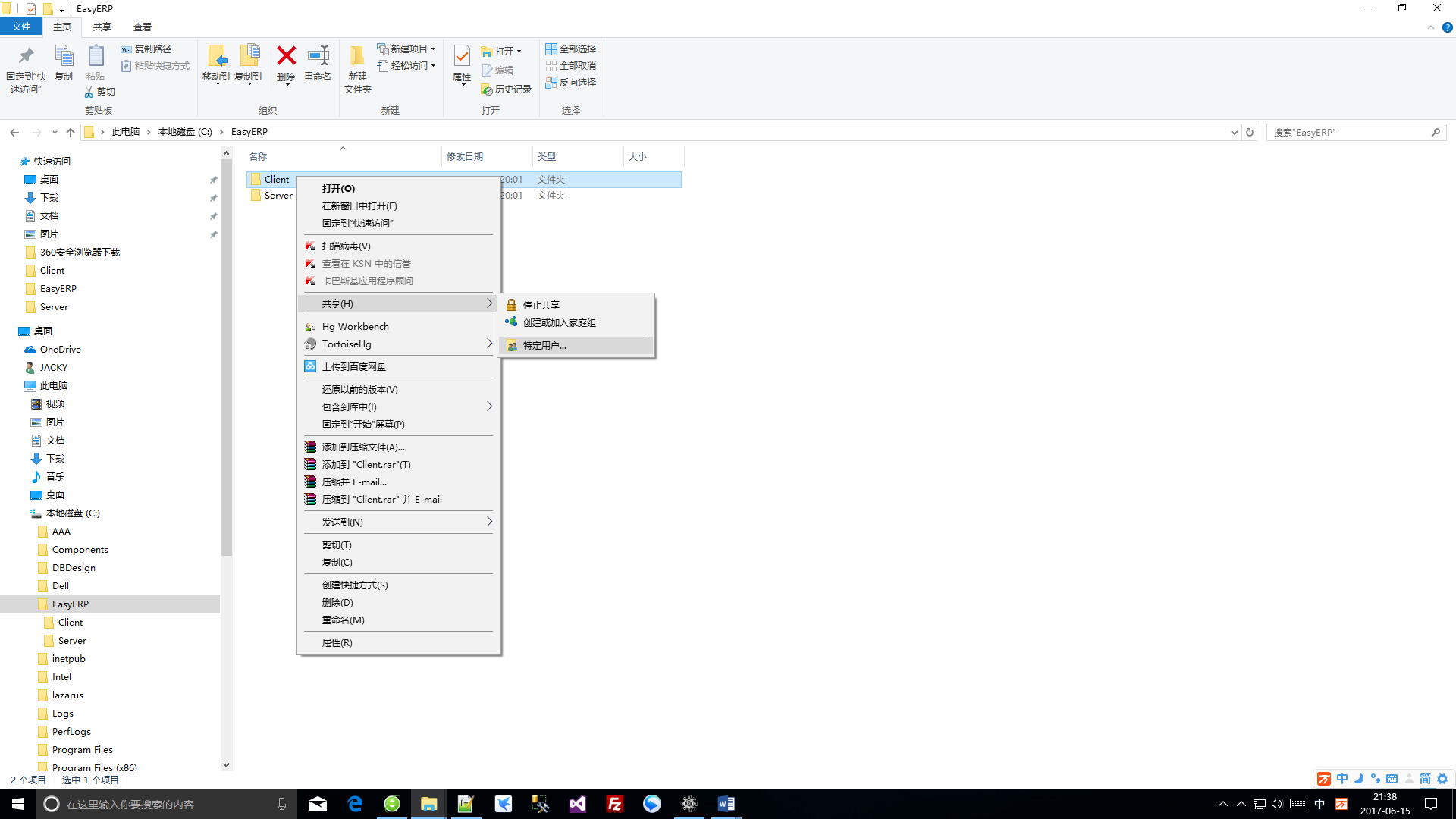 将服务器中易杰ERP客户端的安装目前共享,如下图: