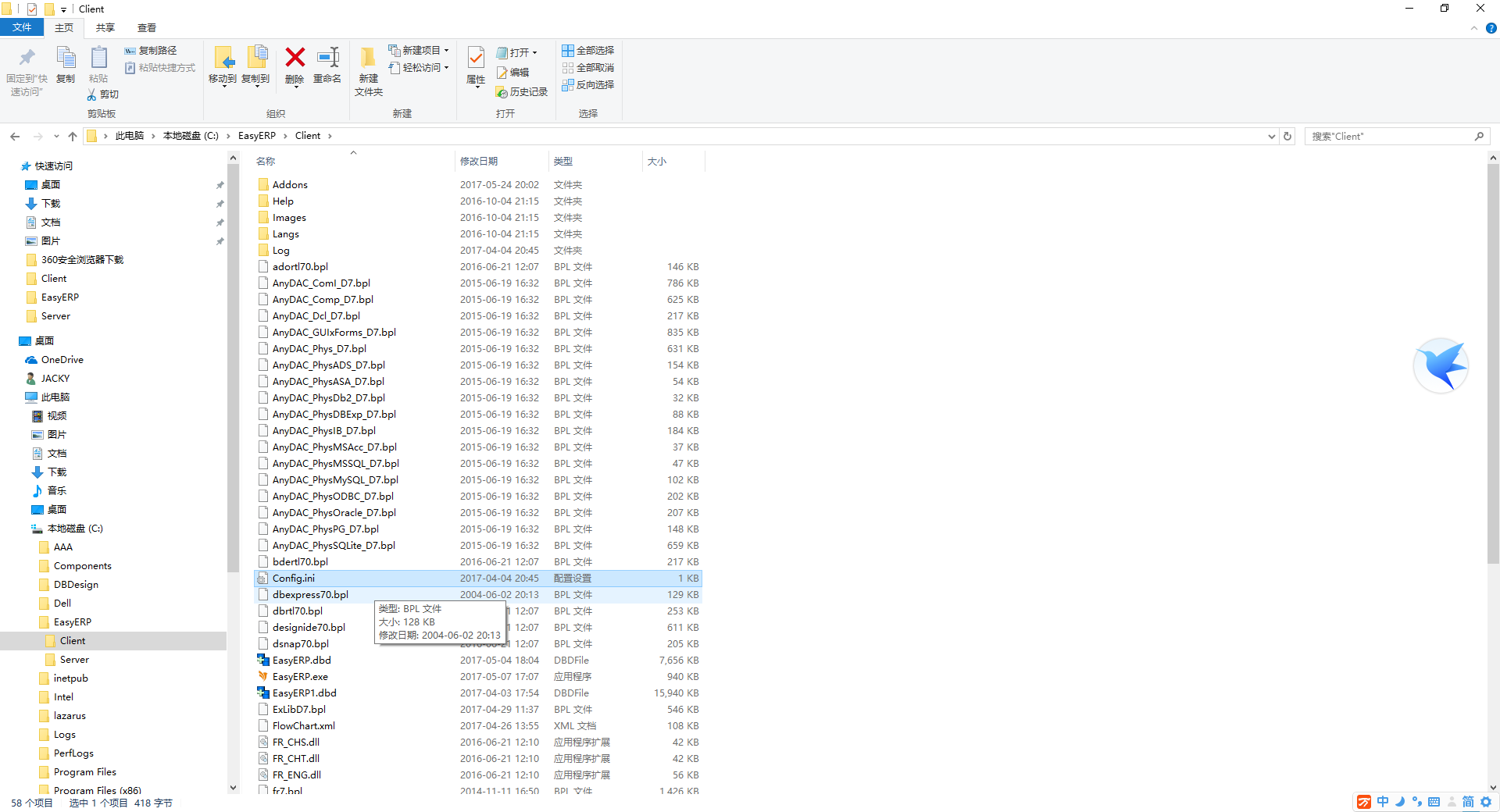 在服务器中找到 易杰ERP 客户端的安装目录,如下图
