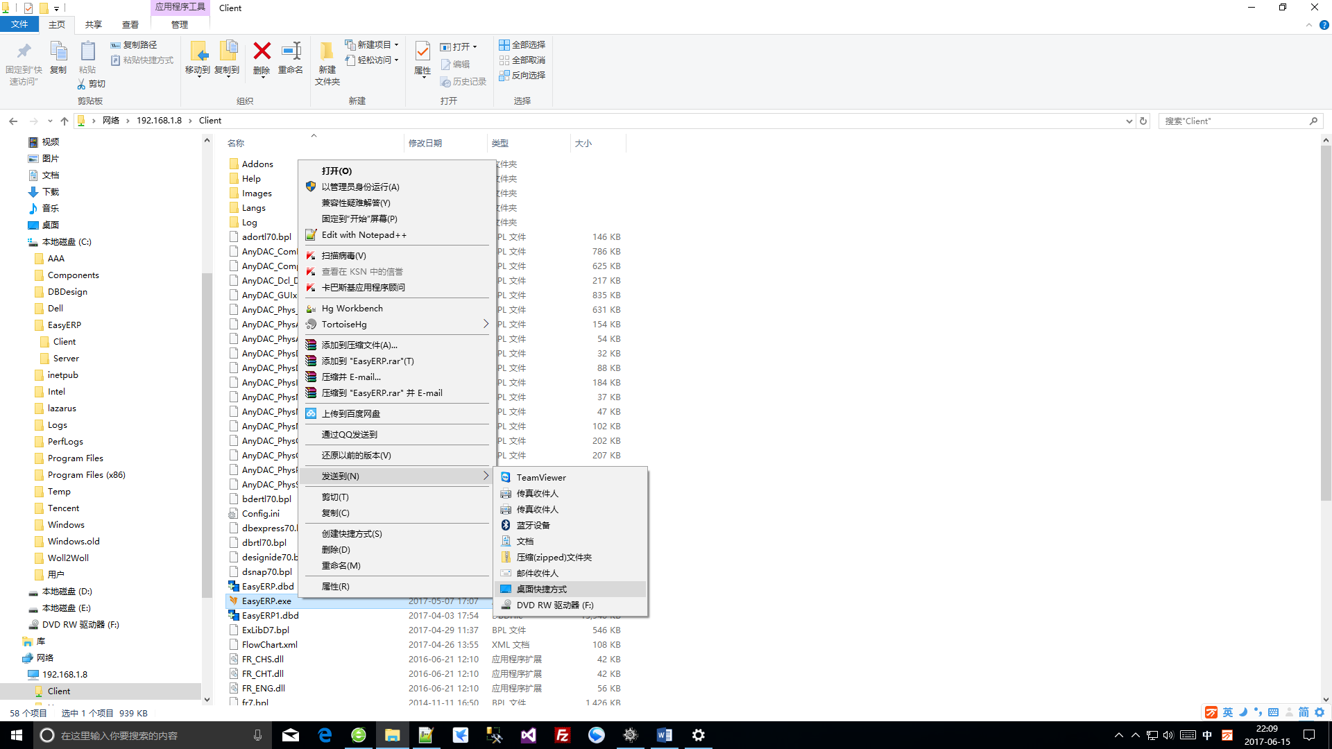 找到 EasyERP.exe 文件,用鼠标右键建立快捷方式,如下图